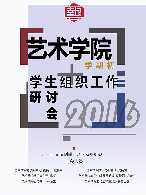 海报:艺术学院2016年10月学期初学生组织工作研讨会