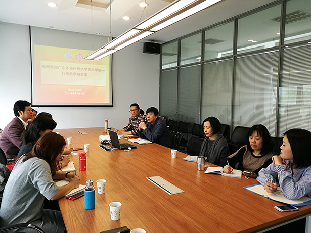 4月17日下午13点30分,广东外语外贸大学艺术学院党总支书记朱珍葶携设计系主任刘晶鑫,音乐系主任杨健生等来到艺术学院开展调研工作。艺术学院副院长王泽猛,党委副书记、副院长程晓军,院长助理张晓霞等参与了调研交流。