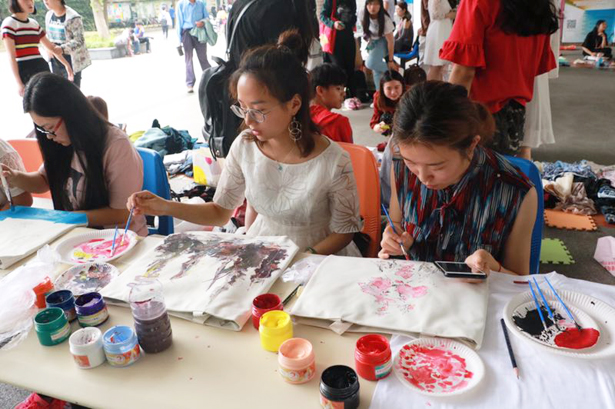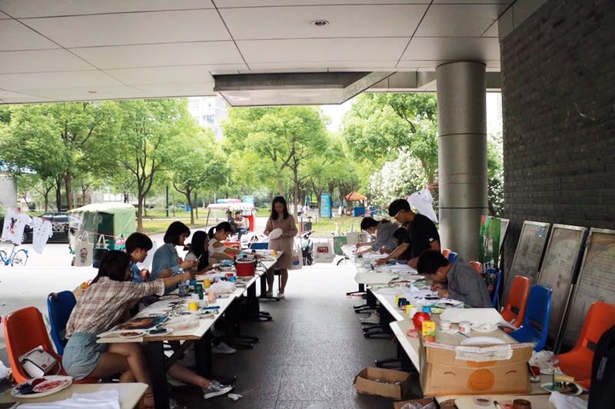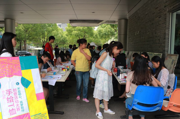 中午12点,负责人简单宣布了比赛规则之后,活动正式开始。首先每10人一轮进行比赛,参加活动的同学们可以根据自己对主题的理解精心设计了T恤衫或者帆布包的图样,绘画材料及工具由活动现场工作人员提供。紧接着每个参赛者纷纷拿起手中的画笔“大显身手”.,有的同学用艳丽的色彩绘图,展现出青春张扬的个性,有的同学则用画笔勾勒出美丽的线条,以清新脱俗打动人心。参加活动的同学们的思路不拘一格,作品极富创意。