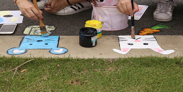 作为一名艺术学院的学生,相比画纸,在石头上彩绘更具有吸引力。上午阳光灿烂,微风吹拂。当负责人讲解完今日活动的流程以及彩绘石头的具体操作后,每个学生都迫不及待地扬起画笔,准备大干一场。