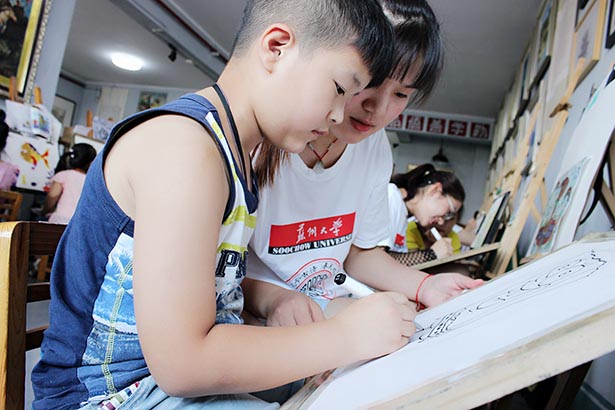 苏州大学艺术学院“文艺下乡”暑期社会实践湖南岳阳分队于7月17日联合岳阳楼街道团工委、岳阳青藤画室开展了“喜迎十九大,青春建新功”志愿服务活动。