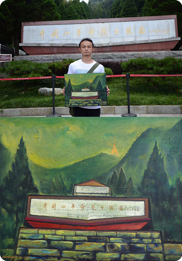 团队成员们开展以“井冈逐梦”为主题的革命历史寻访调研与绘画创作实践活动。他们通过“祭奠井冈英烈”仪式教学、“红军的一天”情景教学、黄洋界现场教学等课程的学习,创作出了《井冈情系列》、《夕阳下的黄洋界》等近二十幅版画、国画、插画、油画及书法作品,用艺术的形式弘扬革命精神,传承红色记忆。除此之外,成员们还设计并制作出许多衍生产品,并作为礼物赠予各个高校实践团队的成员,与他们结下了深厚的友谊。