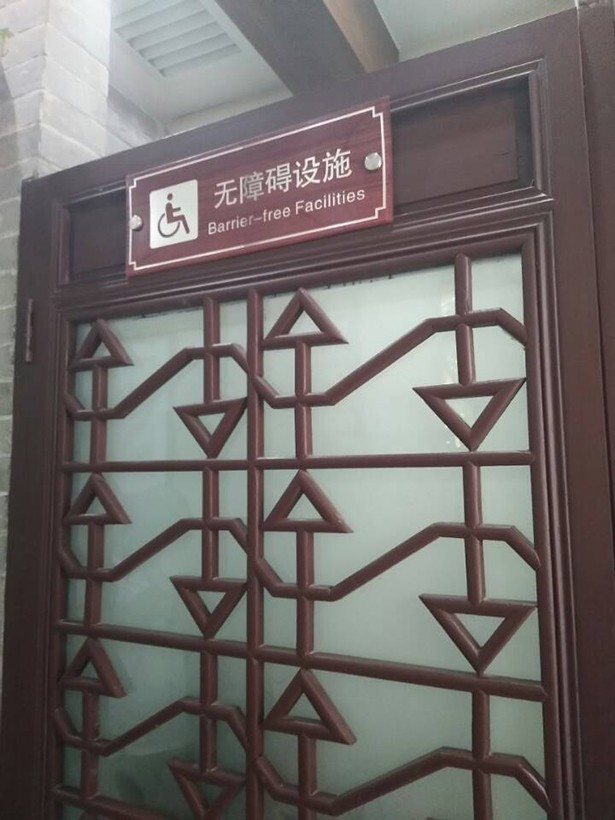 在这个期间,该团队来到了苏州,走访了当地的各大古镇,着重实地考察了同里古镇公共场所的各类无障碍设施,对其无障碍设施的情况进行统计,了解到无障碍的设施并不完善,少之又少,但庆幸的是洗手间的无障碍设施相对完善,男女厕所各单独设立了无障碍卫生间,扶手等设置相对合理。其次,也发现了许多可喜的地方。例如,宽桥在楼梯中间设置了方便步行和轮椅残疾者通行的缓坡道;多个商家店门口设置方便残障人士进出室外的缓坡过渡较高台阶等。但遗憾的是,并没有发现有规划的盲道等其他无障碍设施。该团队又对数位当地居民以及商铺进行采访,对它们进行采访记录,也初步了解到了他们对无障碍设计的认识与需求。在考察的过程中,团队成员分工合作,以极高的效率进行了实地调研。