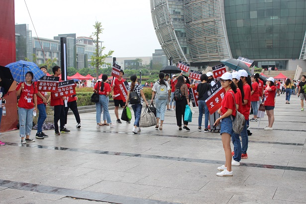 虽然,迎新途中天公不作美,下了些雨,但这并不影响我们志愿者的工作,服务团依旧面带笑容,热情且不厌其烦地为新生和家长们指路及解答问题,这让新生和家长们充分感受到了艺术学院的温暖细致。而我们的吉祥物——小青,也不辞劳累地陪伴着大家一起把苏大的新学子带“回家”。