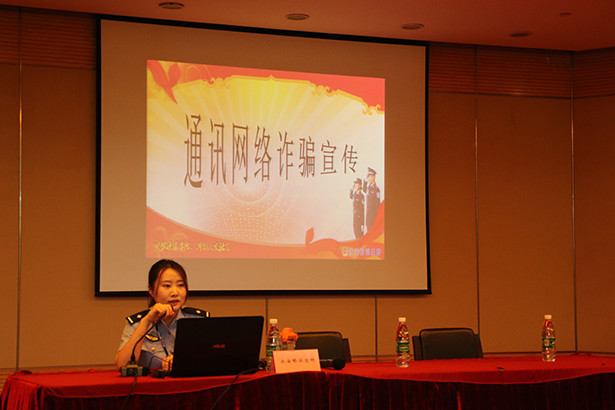 首先由赵警官向同学们介绍通讯网络诈骗的类型和案例,她结合往年的一些经典受骗案例,来警示同学们在网上与人交往时要注意保护自己的个人信息,不要随便透露,并且在收到诈骗信息时要头脑清醒,及时辨别有害诈骗信息,然后赶快报案,保护自己的财产安全,同学们都积极反应。