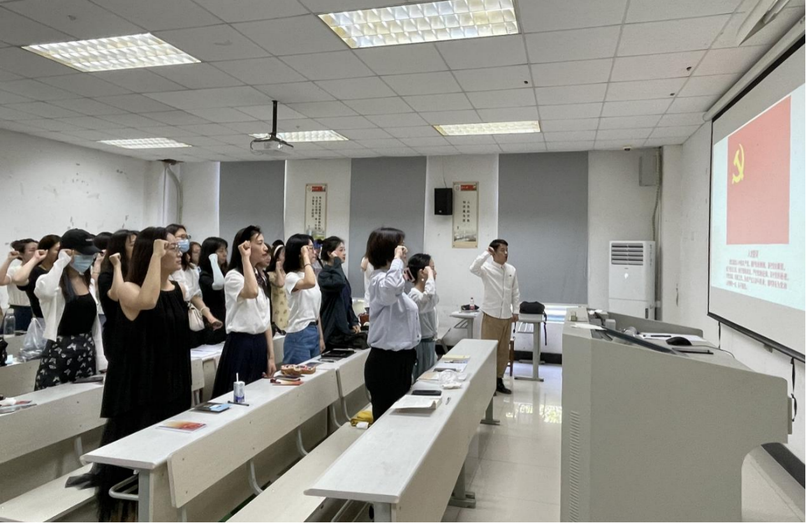 随后,毕业生党员代表刁井达同学带领全体师生党员重温入党誓词,激昂的宣誓声音回荡在教室里,彰显着每位毕业生党员争做一名优秀党员的决心和毅力。