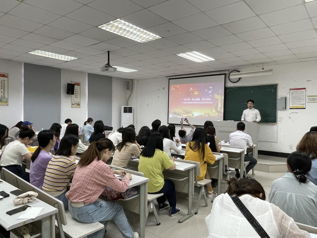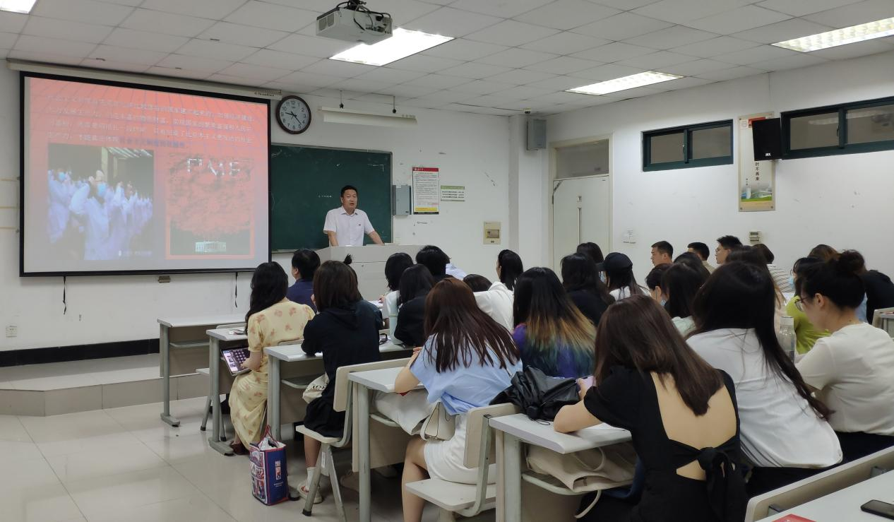 首先,顾德学书记为毕业生党员做了题为“学党史-强党性”的专题党课。他从中国共产党的早期发展、国内外形势再到“中国梦”的多重解读,多角度的给同学们带来了一次形象生动的党课。顾书记也给毕业生党员送上了真诚的毕业祝福,希望党员同学们能够不忘党员身份,在工作岗位中继续发光发热,发挥好党员的先锋模范作用。