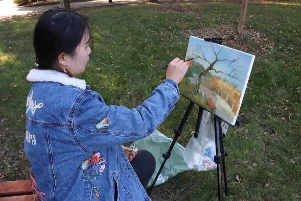 随后,学生们拿起自己的画具纷纷去寻找校园美好的风景。