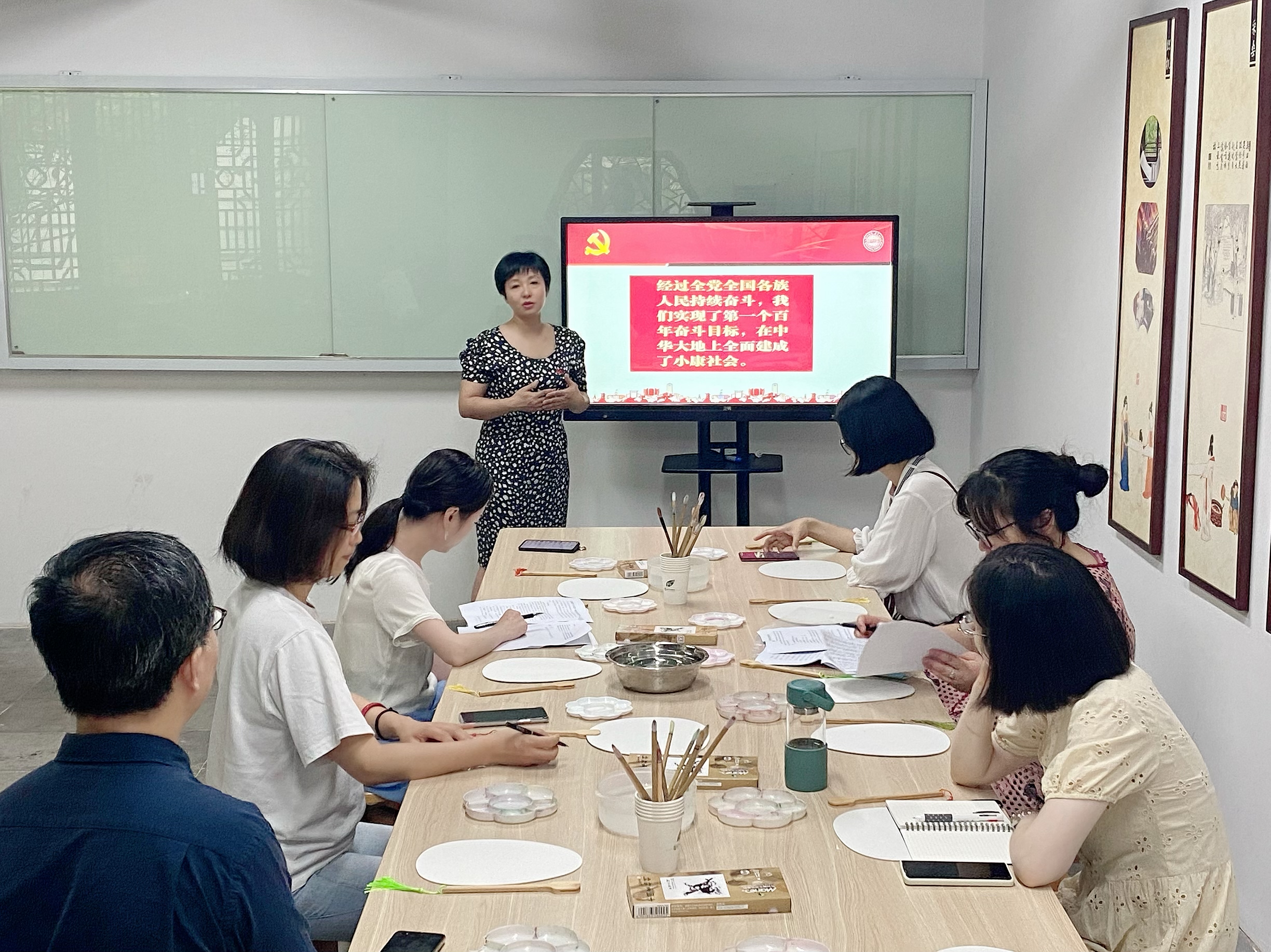 本次活动分为五个部分进行:第一部分,参观《江南织绣——传承创意大赛作品展》以及丝绸博物馆常设馆;第二部分,党史讲堂第三讲——学习习近平总书记在庆祝中国共产党成立100周年大会上的重要讲话精神,主讲人张洁(艺术学院党委副书记、副院长);第三部分,专题组织生活会——汇报学习党史心得体会和批评与自我批评;第四部分,重温入党誓词;第五部分,画扇活动——“海棠花红”。