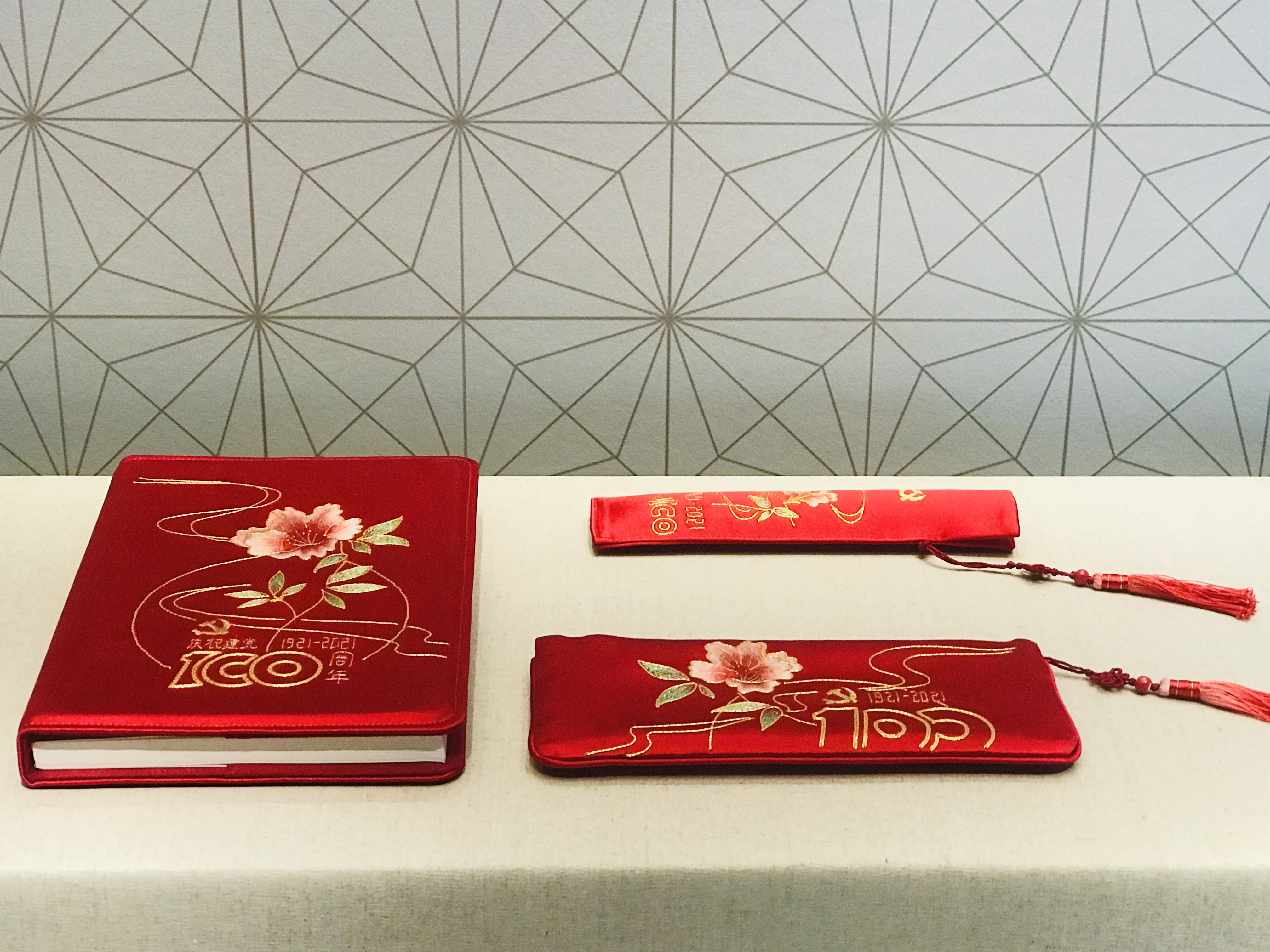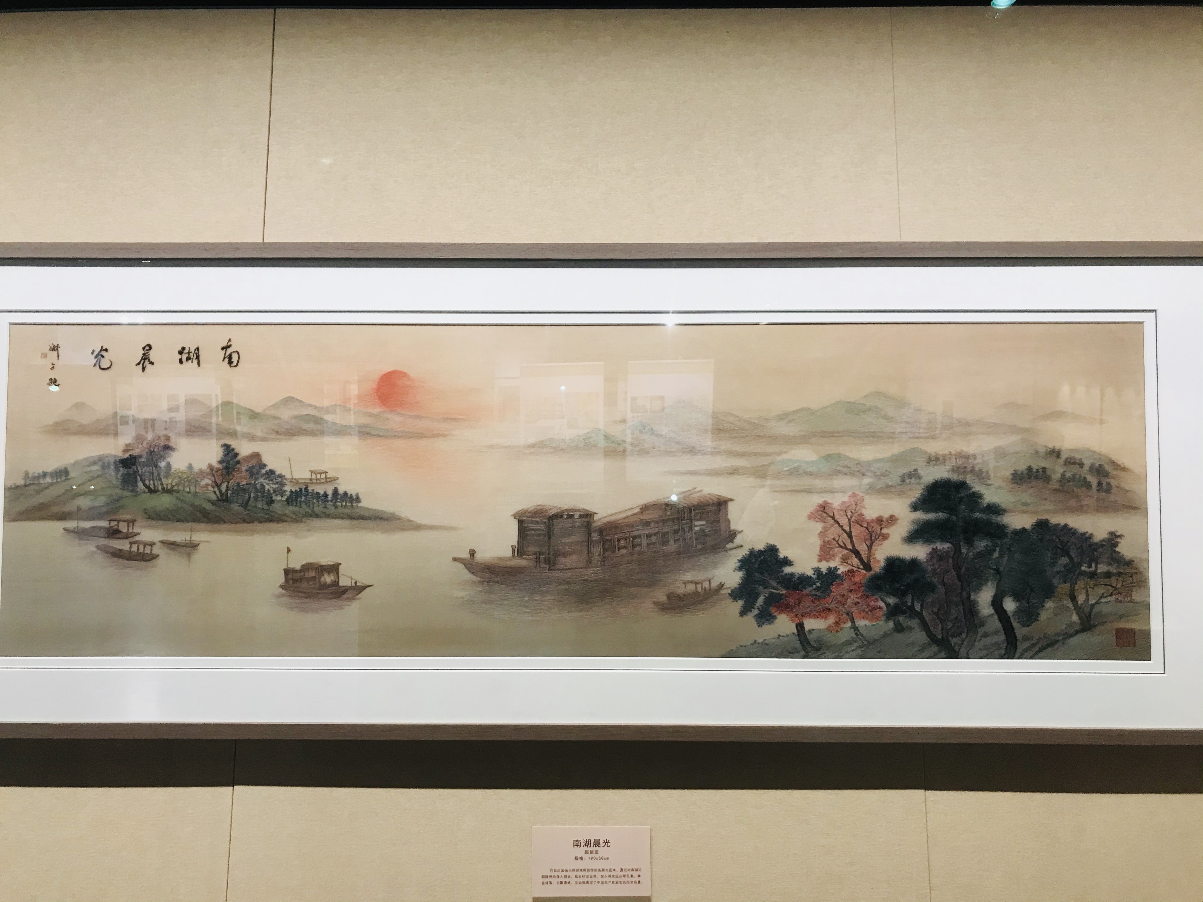 首先我们先参观了《江南织绣——传承创意大赛作品展》,本次展览含苏绣、缂丝、宋锦、漳缎、剧装等非遗项目,以丝线描绘水乡丹青,凭经纬述说天地芳华,主要分为传承与创意两个部分。传承类作品以红船、花鸟、人物、山水等为题材,既展现当代江南织绣的技艺与风貌,也体现守正创新的时代精神。创意类作品则巧妙运用吉祥纹样、园林、水乡等元素,以丝绸为载体将江南文化融入生活,以创意诉说艺术工作者的炙热情怀。此次展览激发非遗传承人和社会各界爱党爱国热情,吸引更多的年轻人关注苏州织绣和江南文化。
