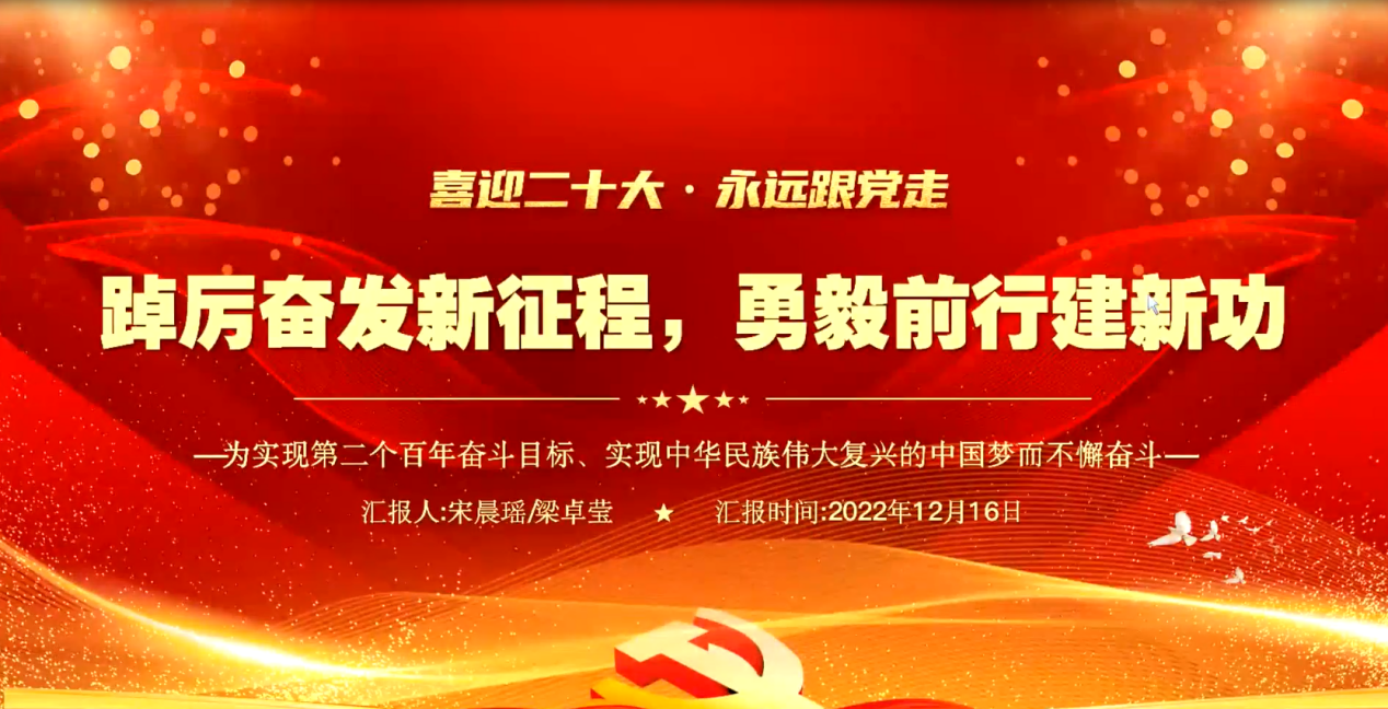 2022年12月16日下午18点,21级专硕党支部开展“踔厉奋发新征程,勇毅前行建新功——学习宣传贯彻党的二十大精神主题党日活动”,党支部全体成员参与了本次活动。