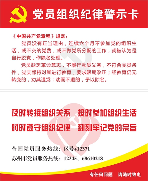 接下来,全体毕业生党员进行了《中国共产党党员教育管理工作条例》的集体学习。最后,由支部书记向毕业生党员发放《党员组织关系管理问答》和《党员组织纪律警示卡》。