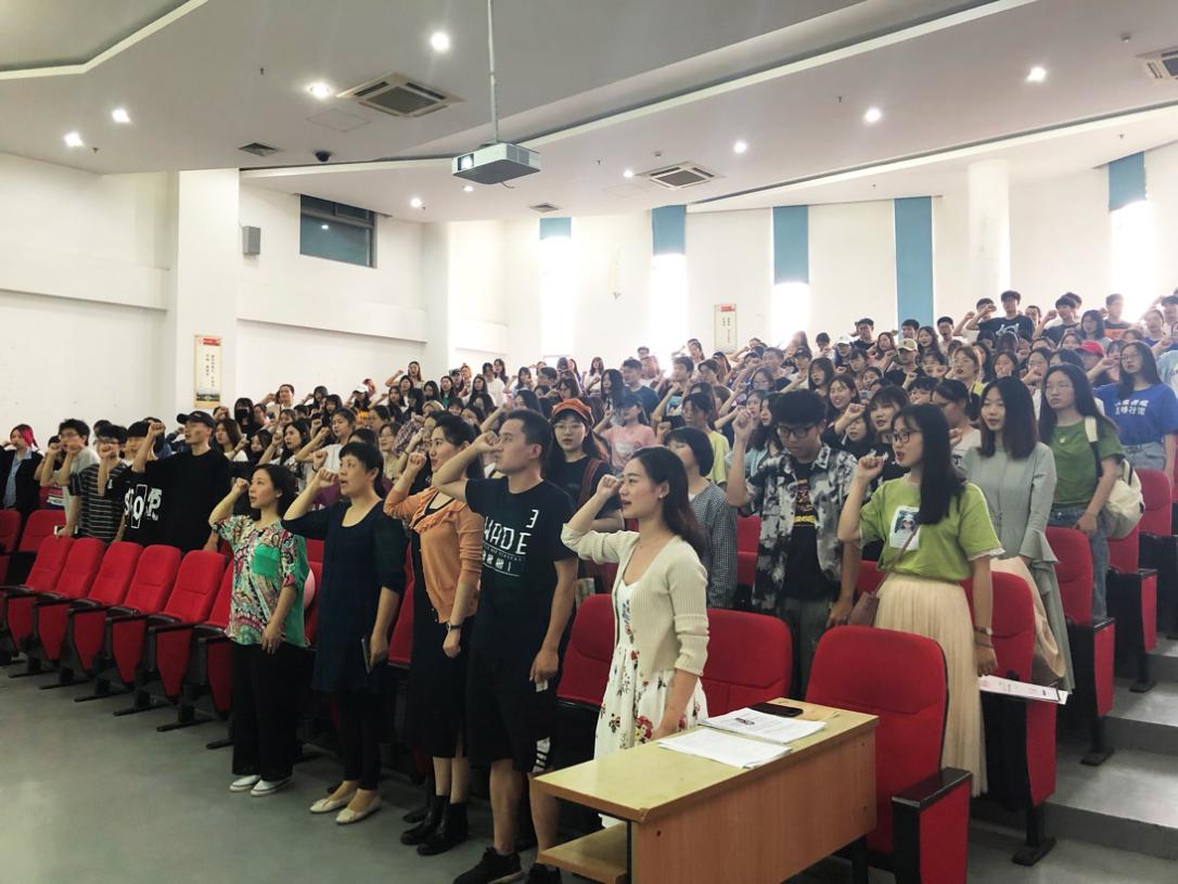 活动最后由杨子佩同学领读艺术学院2019年暑期社会实践誓词,带领同学们表达了传承五四运动,回报祖国和社会,勇于挑战,共创中国梦的决心。