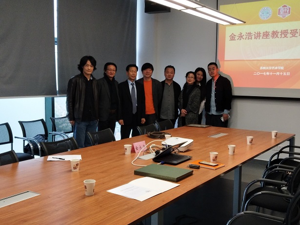 2017年11月5日,在苏州大学艺术学院会议室举办了金永浩讲座教授受聘仪式,出席本次会议的嘉宾有艺术学院院长姜竹松,副院长王泽猛和院长助理张大鲁,以及视传、环艺设计等专业老师。