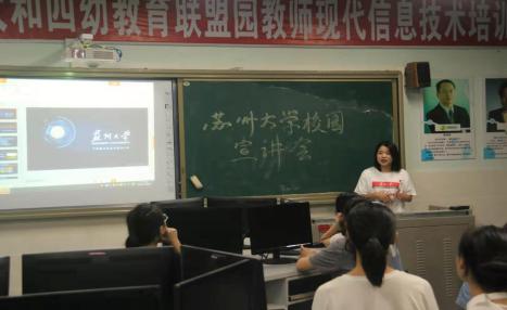 7月7日晚,为宣传苏大发展,展示苏大形象,苏州大学艺术学院“遂宁环境提升设计实践团”前往四川省遂宁市射洪县射洪绿然国际学校进行苏州大学校园宣讲活动。